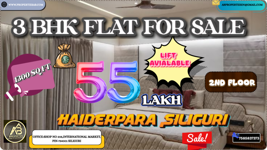 3 BHK Flat for Sale in Haiderpara Siliguri – 1300 Sqft | 2nd Floor | Lift Available | 55 Lakh